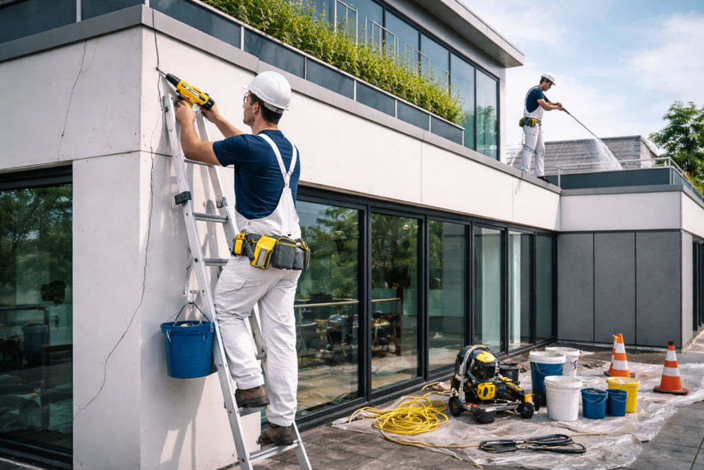 Nuestro servicio de fachadas y cubiertas está enfocado en la recuperación, mantenimiento y protección de las superficies exteriores de edificios, viviendas, locales y espacios corporativos. Intervenimos fachadas, cubiertas, terrazas y estructuras expuestas al clima, mejorando su apariencia y prolongando su vida útil.