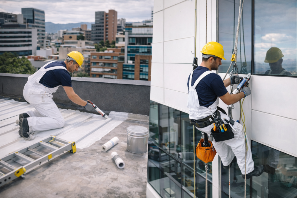 Desarrollamos trabajos de mantenimiento, reparación y renovación de cubiertas y fachadas para oficinas, locales, bodegas y edificios empresariales.