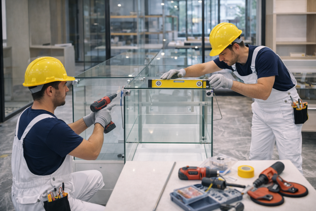 Desarrollamos proyectos de vitrinas para locales comerciales, oficinas y espacios empresariales, orientados a mejorar la exhibición de productos, optimizar el espacio y generar una mejor experiencia para clientes y visitantes.
